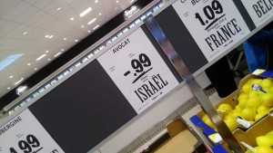 Il y avait la présence d’avocats de la marque Mehadrin et des agrumes de la marque Jaffa issus de colonies illégales en Palestine occupée au regard du droit international.