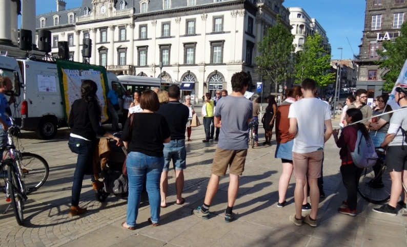 Devant l’intransigeance du gouvernement israélien, et les risques de déflagration en Palestine, l’AFPS 63 et BDSF 63 ont appelé (en concertation avec RESF 63) leurs militant-e-s à participer le 24 mai à un rassemblement de RESF/FCPE 63 soutenus par des associations et syndicats (LDH, CGT, FSU,…, près de 80 personnes) présentant une fresque dessinée par les parents et enfants de l’école Paul Bert de Clermont-Ferrand en soutien à Besnik, qui est sous le coup d’une OQTF et d’une IRTF.