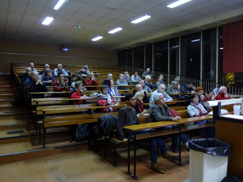 Près de 50 personnes sont venues le 13 novembre 2018 à la fac des lettres de Clermont-Ferrand écouter la conférence de Nada Awad, Palestinienne vivant à Jérusalem, diplômée de Sciences Po Paris, spécialiste de droit humanitaire. Outre des militants AFPS et de la Coalition BDS63, de nombreuses personnes inconnues, souvent jeunes. Ainsi que quatre Palestinien(ne)s de Jérusalem, Bethléem, Hébron ou Gaza.