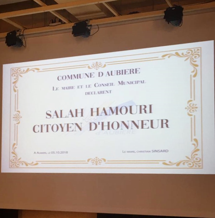 Vendredi 5 octobre, 130 personnes environ se sont retrouvées à la mairie d’Aubière pour la cérémonie faisant Salah Hamouri citoyen d’honneur de la ville, 8 ans jour pour jour après la ville de Beaumont, à la différence notoire qu’en ce 5 octobre 2018 Salah Hamouri est libre.