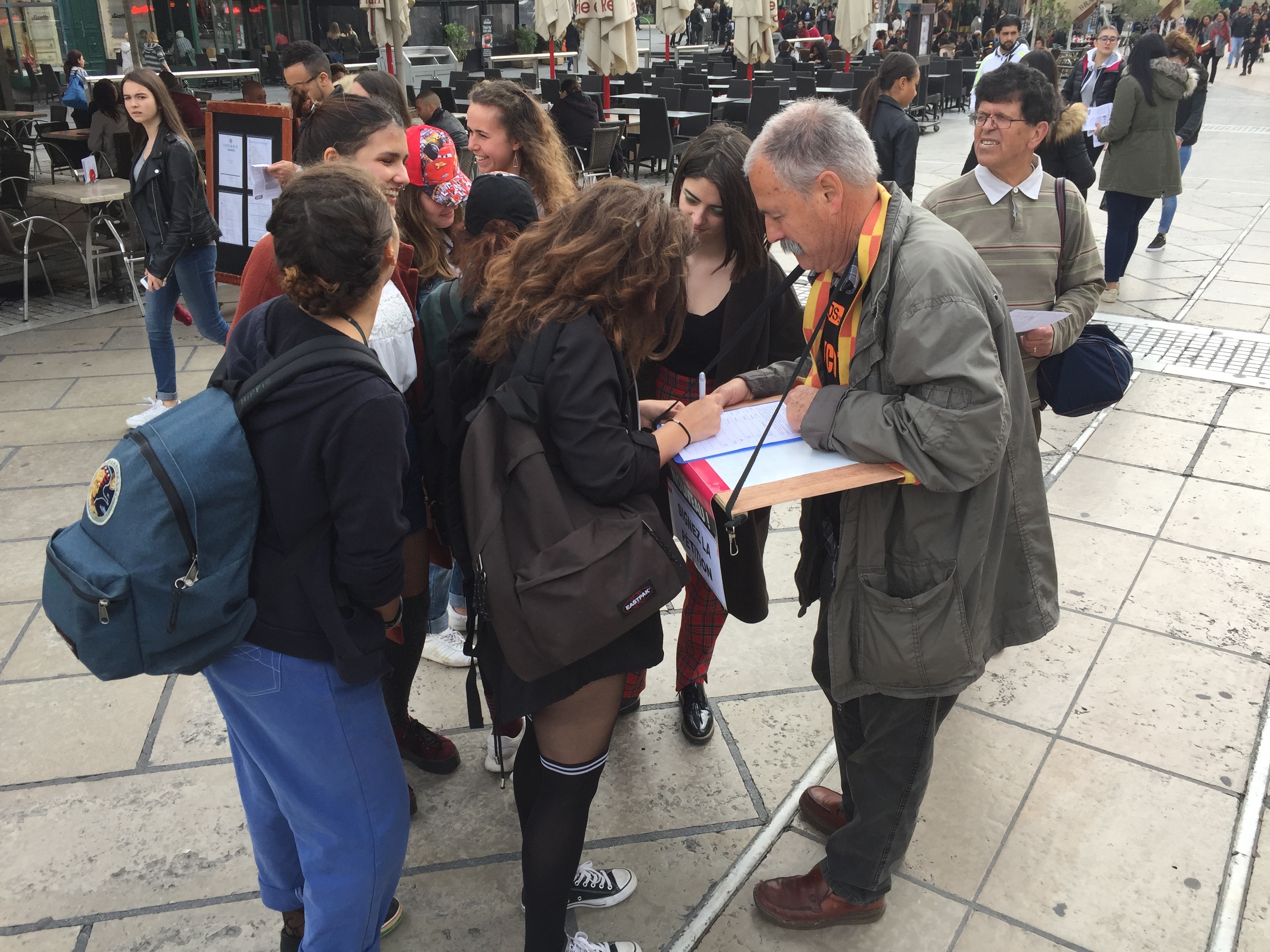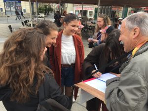 De très nombreux jeunes s’arrêtent pour signer et s’informer sur la Palestine