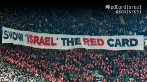 Un groupe de travail spécifique de la Campagne BDS France, « Carton Rouge Pour l’Apartheid Israélien » s’occupe de la campagne de boycott sportif, et en particulier dans le domaine du football.