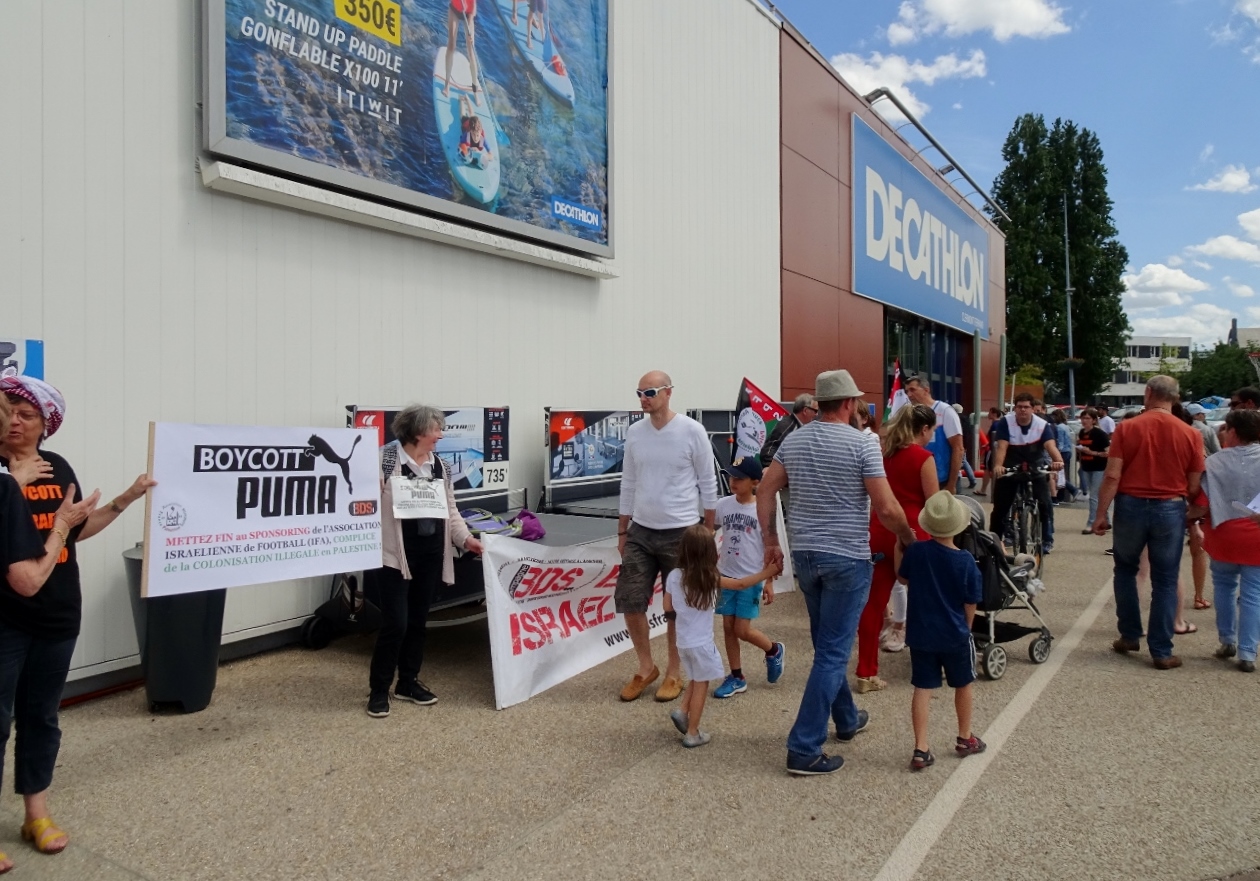 Un courrier avait été envoyé auparavant à Decathlon et Sport 2000, expliquant l’action #BoycottPuma, et leur fournissant notre tract et la lettre de 215 clubs de sport palestiniens exhortant @Puma à mettre fin à son parrainage de l’apartheid israélien.