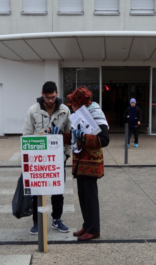 Participation de Clermont-Ferrand le 23 décembre 2017 à l’action BDS mondiale pour le Désinvestissement de Hewlett Packard, à l’appel du BNC palestinien .