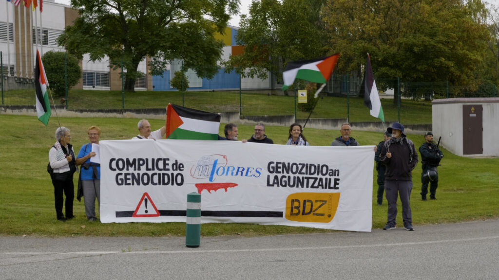 En Navarre, des militant·es ont manifesté devant l’usine MTorres, qui fournit à Lockheed Martin des ailes et d’autres pièces pour les F-35, pour exiger l’annulation de son contrat.
