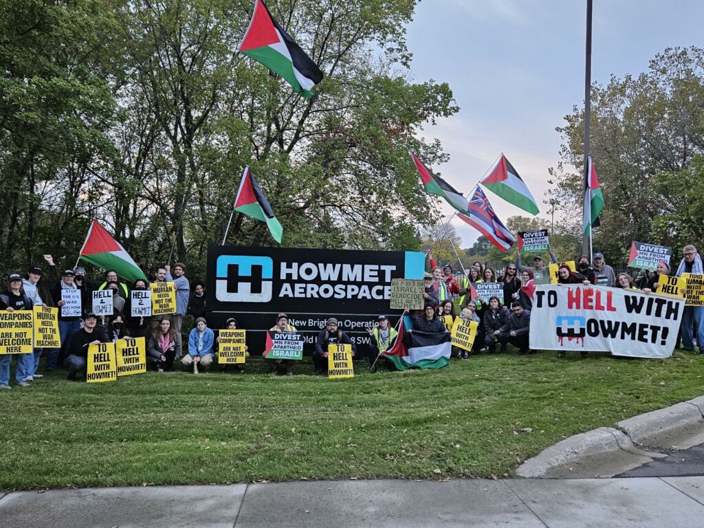Devant l’usine Howmet New Brighton dans le Minnesota, des manifestant·es ont exigé que l’entreprise mette fin à sa complicité dans le génocide israélien. Howmet développe des pièces pour le F-35.