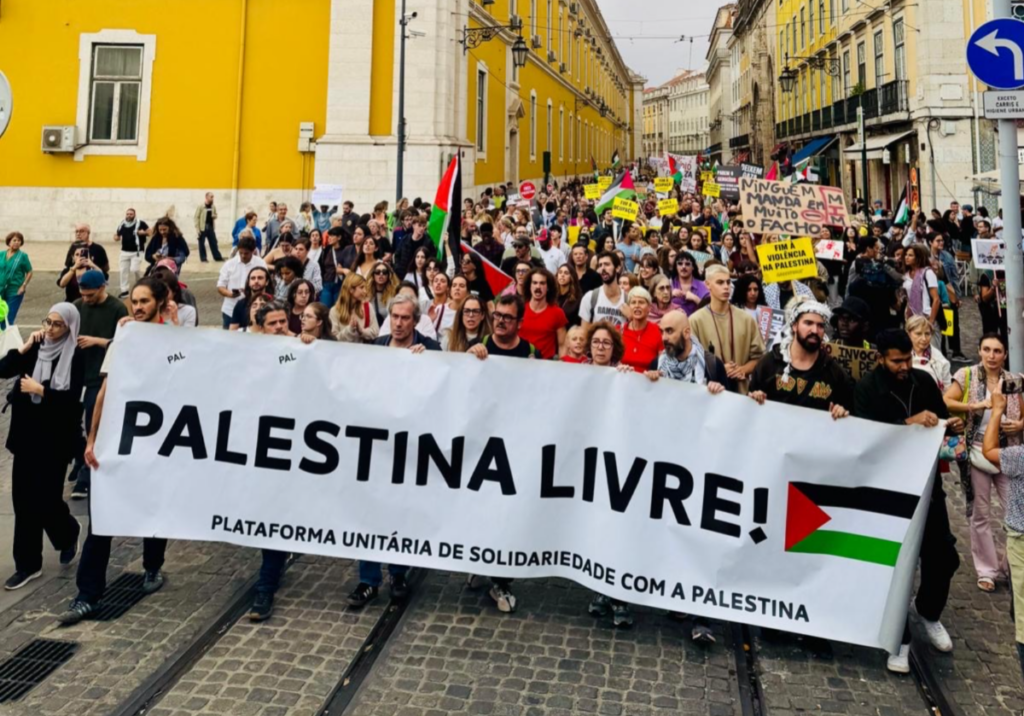 Des militant·es ont manifesté à Lisbonne contre l’utilisation de la base portugaise de Lajes comme base de transit pour les F-35 en route vers Israël.
