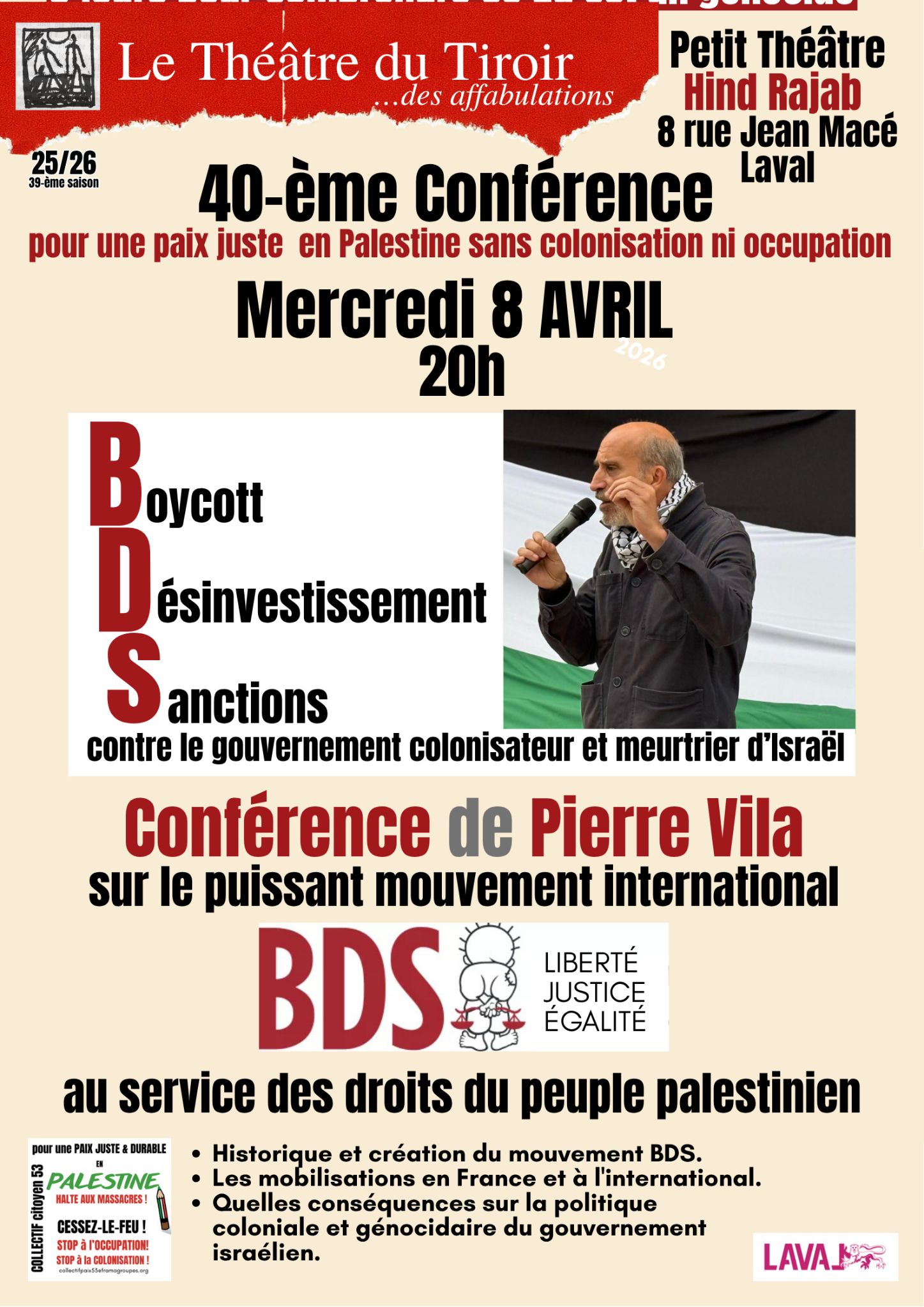 Conférence de Pierre Vila sur le puissant mouvement international BDS au service des droits du peuple palestinien