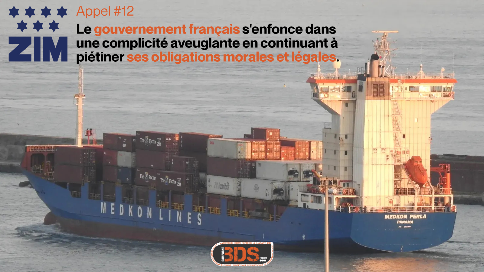 NOUS APPELONS À INTERDIRE NOS PORTS À ZIM ET AUX NAVIRES NAVIGUANT EN SON NOM.
