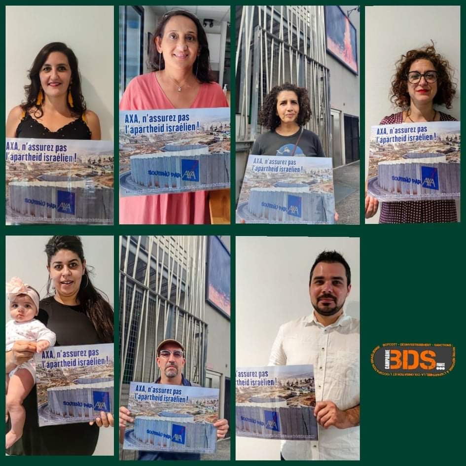 Contre la complicité d’AXA et de PUMA vis-à-vis de la colonisation et de l’apartheid israéliens, la campagne BDS France s’est mobilisée dans plusieurs villes le 19 juin 2021.