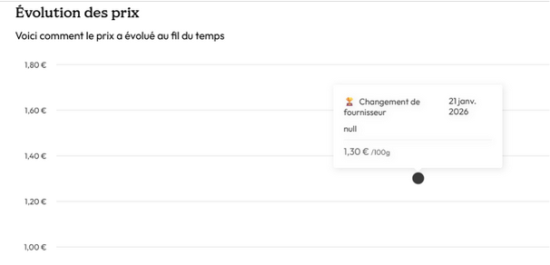 Et dans la rubrique « évolution des prix » on voit un changement de fournisseur…