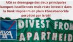 D’après les nouvelles recherches d’Ekō, AXA a vendu toutes ses actions de l’Israel Discount Bank et de la Bank Leumi, qui financent les colonies illégales d’Israël, mais possède des actions … Au milieu du #GazaGenocide perpétré par Israël, AXA se désinvestit de toutes les banques israéliennes SAUF UNE ! Intensifions le #BoycottAXA maintenant !