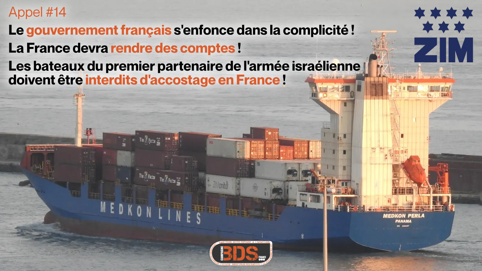 NOUS APPELONS À INTERDIRE NOS PORTS À ZIM ET AUX NAVIRES NAVIGUANT EN SON NOM