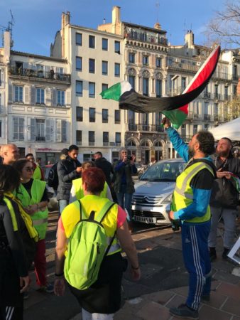 Après une prise de parole de BDS Marseille pour expliquer la situation à Gaza et les violations du droit international par l’état israélien, le cortège a descendu la Canebière jusqu’au vieux port de Marseille, avec des banderoles et des drapeaux, tout en distribuant des tracts.