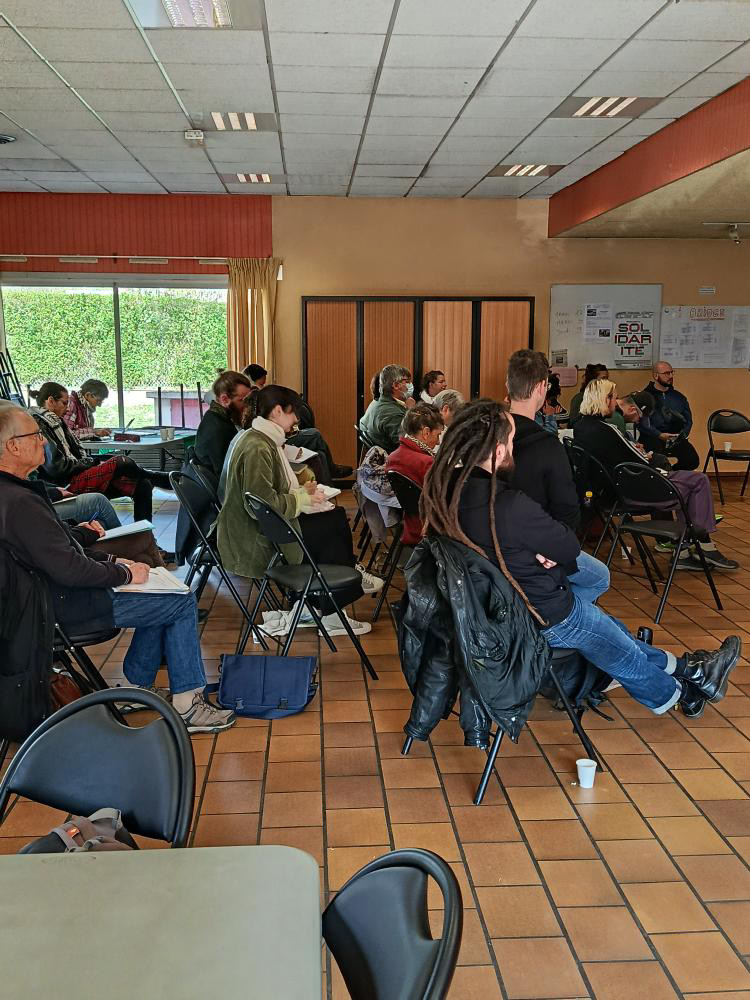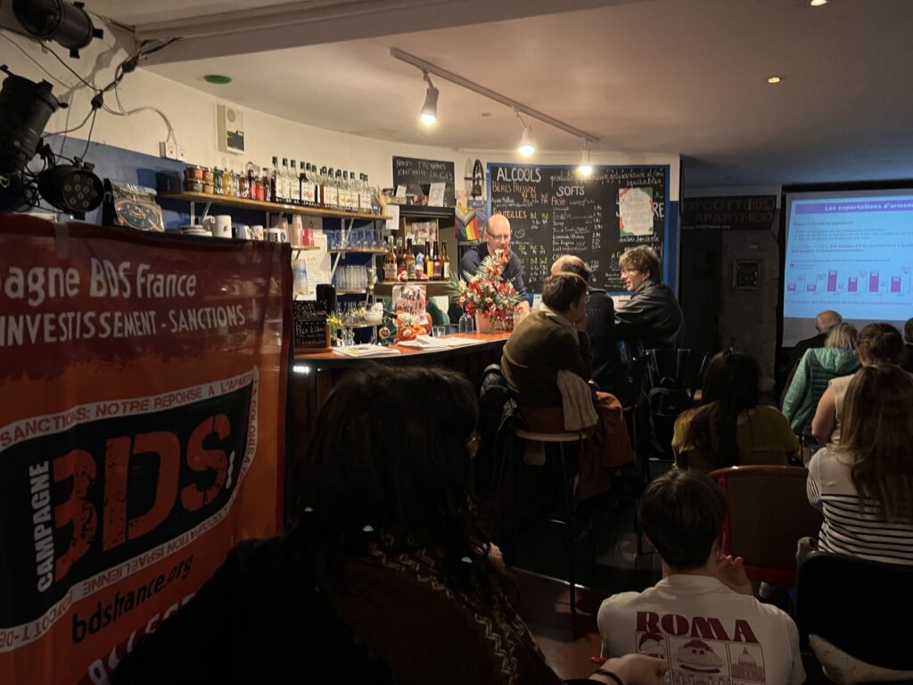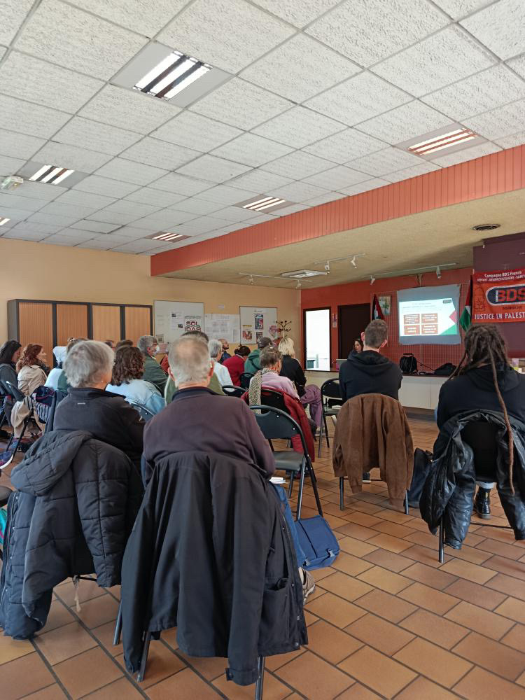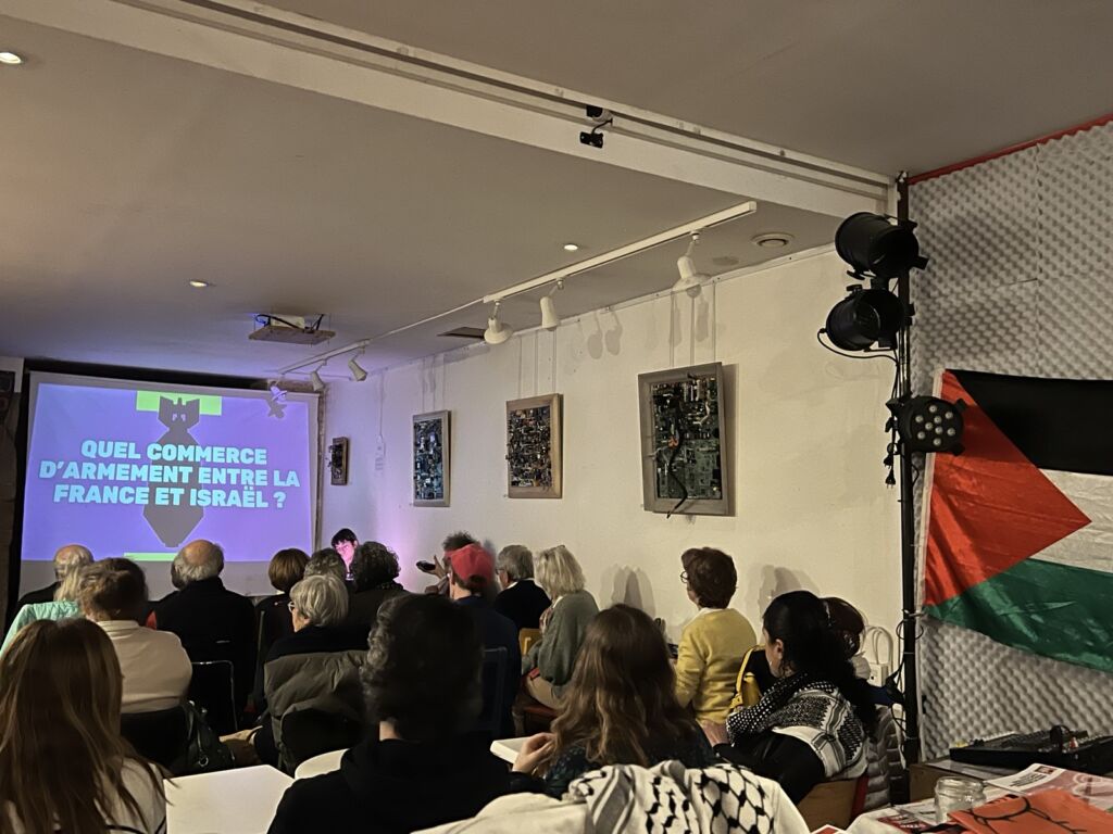 Pour cette première soirée organisée dans le cadre de l’IAW, la salle était remplie pour découvrir un exposé de Stop Arming Israel France sur l’armement français et les ventes d’armes de la France vers Israël, ainsi que nos actions locales — contre l’armement et contre le transit d’armes dans nos ports — participant au soutien du peuple palestinien, aujourd’hui confronté à une situation d’une gravité sans précédent.