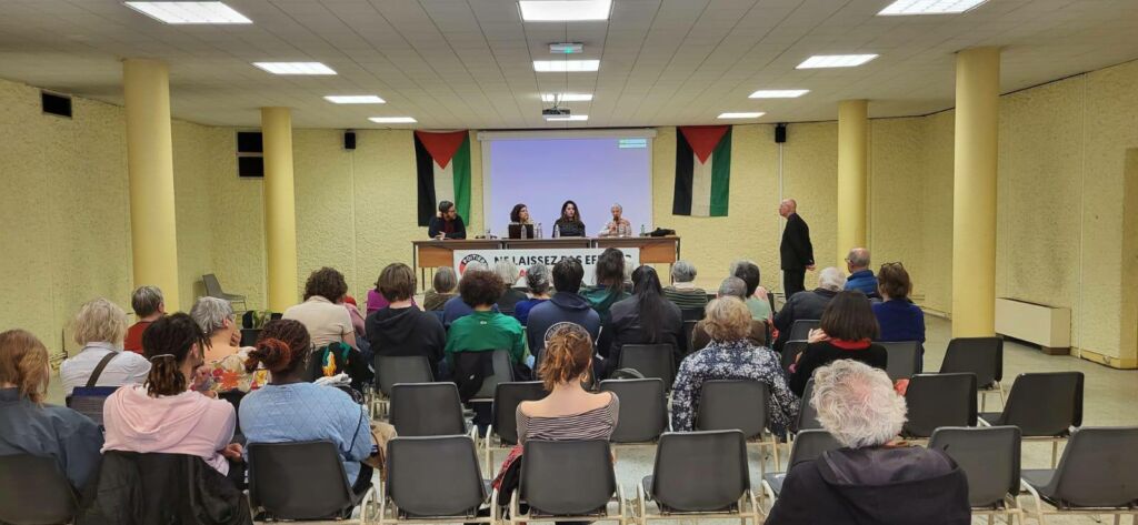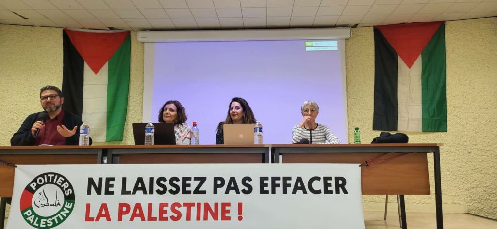 Dans le cadre du mois sur le thème « déconstruire l’extrême droite », une belle rencontre a été organisée à Poitiers avec les camarades Muzna Shihabi (Centre arabe de recherches et d’études politiques) et Imen Habib (animatrice de la Campagne BDS France). Une quarantaine de participant·es étaient là pour assister à la discussion sur le génocide, la colonisation et l’apartheid israéliens en Palestine et la solidarité avec le peuple palestinien.