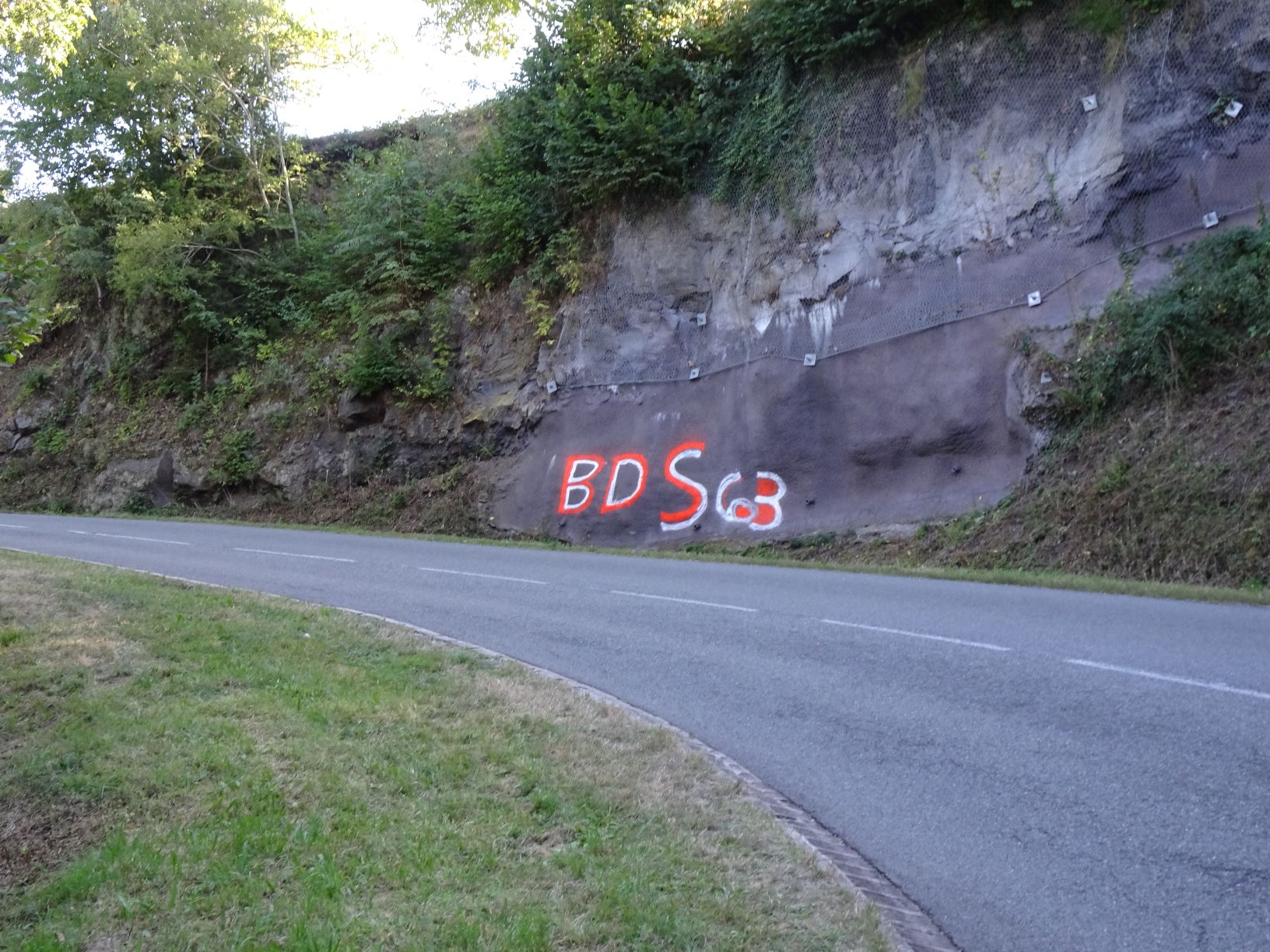Tout ou partie des décorations nocturnes (tags Palestine et BDS) de la route et d’une paroi rocheuse au début du col de Ceyssat sont bien visibles dans le replay de l’étape sur France-tv sports, entre 1h1min19sec et 1h3min04sec. Et un peu plus haut, dans le village de la Font de l’arbre, un sympathisant avait érigé notre banderole près de sa palissade en bord de route, où elle a été bien visible durant le passage de la caravane et pour les passants.