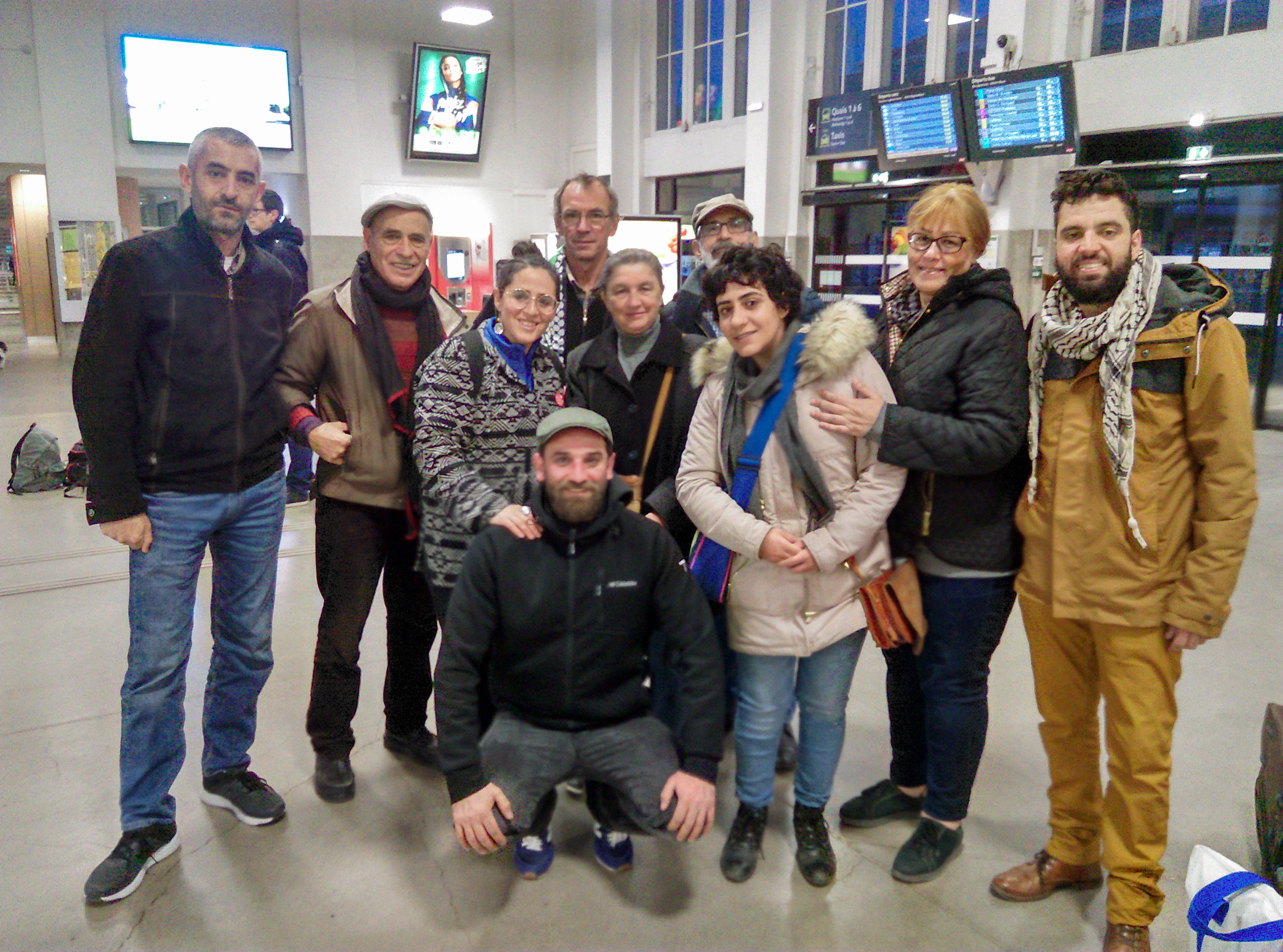 Résumé : Neuf militant-e-s de la GFIU, Fédération Générale des Syndicats Indépendants en Palestine, ont été reçus à Clermont-Fd. Le 11 avril au soir, un groupe de militants AFPS 63 les a conduits pour une visite d’une entreprise de maraîchage Bio et de réinsertion professionnelle, puis d’une ferme Bio de céréales et poulets, dont le foncier est géré par le système associatif de Terre de liens. Les exploitants de la ferme, militants de la Confédération Paysanne et de la FNAB-Bio63, ont ensuite mis leurs locaux à notre disposition pour une soirée d’accueil avec une quinzaine de militants AFPS, BDSF et UNEF.